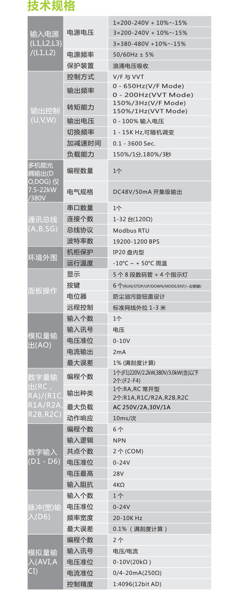 3-PH 380VAC: 0.75-22kW