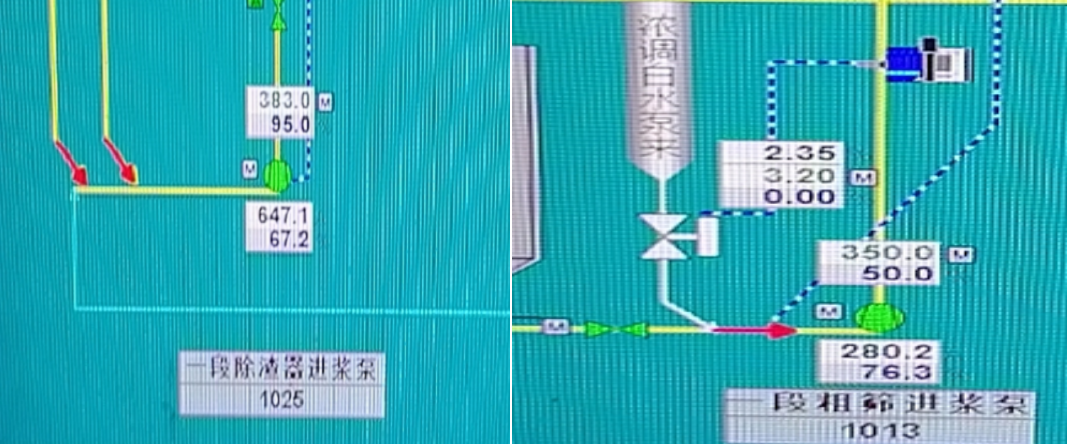 客戶公司選用國內領先的4400及5600高速紙機等生產設備,全部配備DCS全智能控制系統,實現全程智能化管理,控制室工作人員可以監(jiān)視變頻器實際電流和進漿泵處壓力。當漿池液位不夠時,需要提升各進漿泵處的壓力,即提升電機轉速(通過4-20ma信號調節(jié)),當漿池液位達到要求時,需要降低各進漿泵處的壓力,即降低電機轉速(通過4-20ma信號調節(jié))。